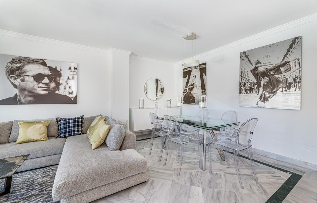 This elegant apartment perfectly blends modern comfort with a serene atmosphere surrounded by lush tropical gardens. Located in the prestigious Dama de Noche complex, it enjoys an unbeatable position just minutes from Puerto Banús and some of Marbella’s finest beaches.